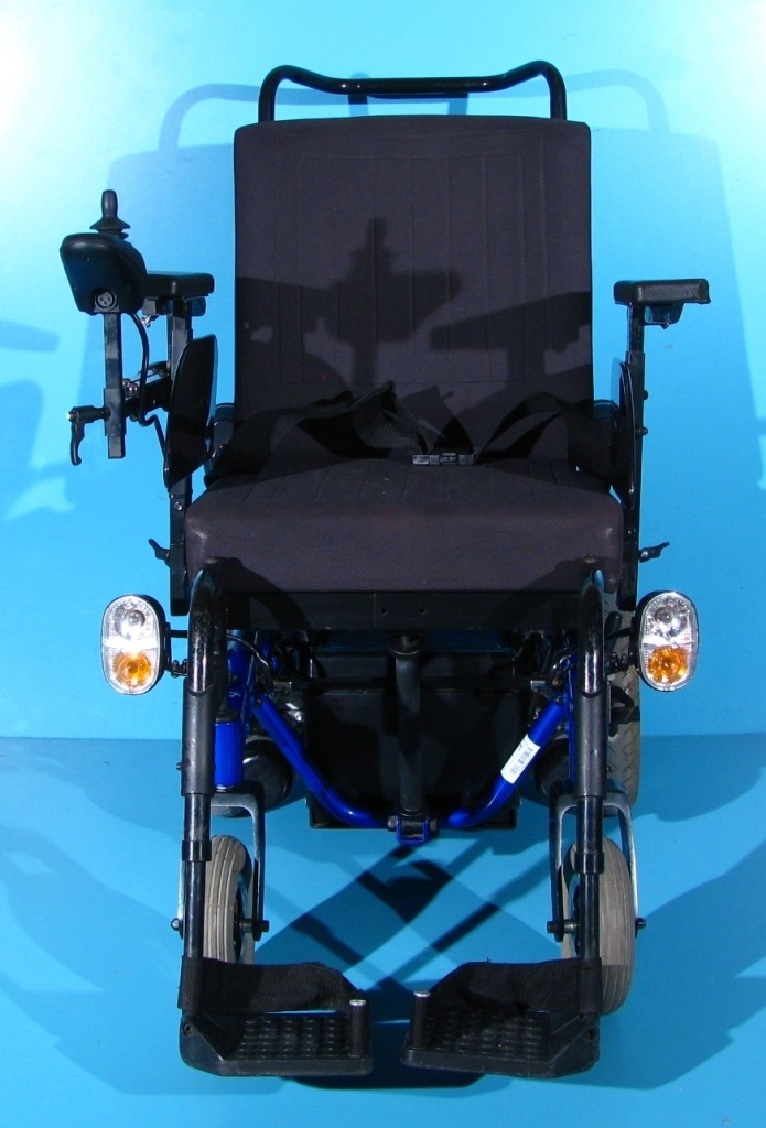 Scaun cu rotile electric, second hand, cu comandă pe joystick, destinat persoanelor cu handicap și celor cu deficiențe locomotorii. Caruciorul electric este proiectat pentru a oferi siguranță, stabilitate și confort, fiind dotat cu sistem de iluminare și semnalizare, ceea ce îi permite utilizarea pe drumurile publice.