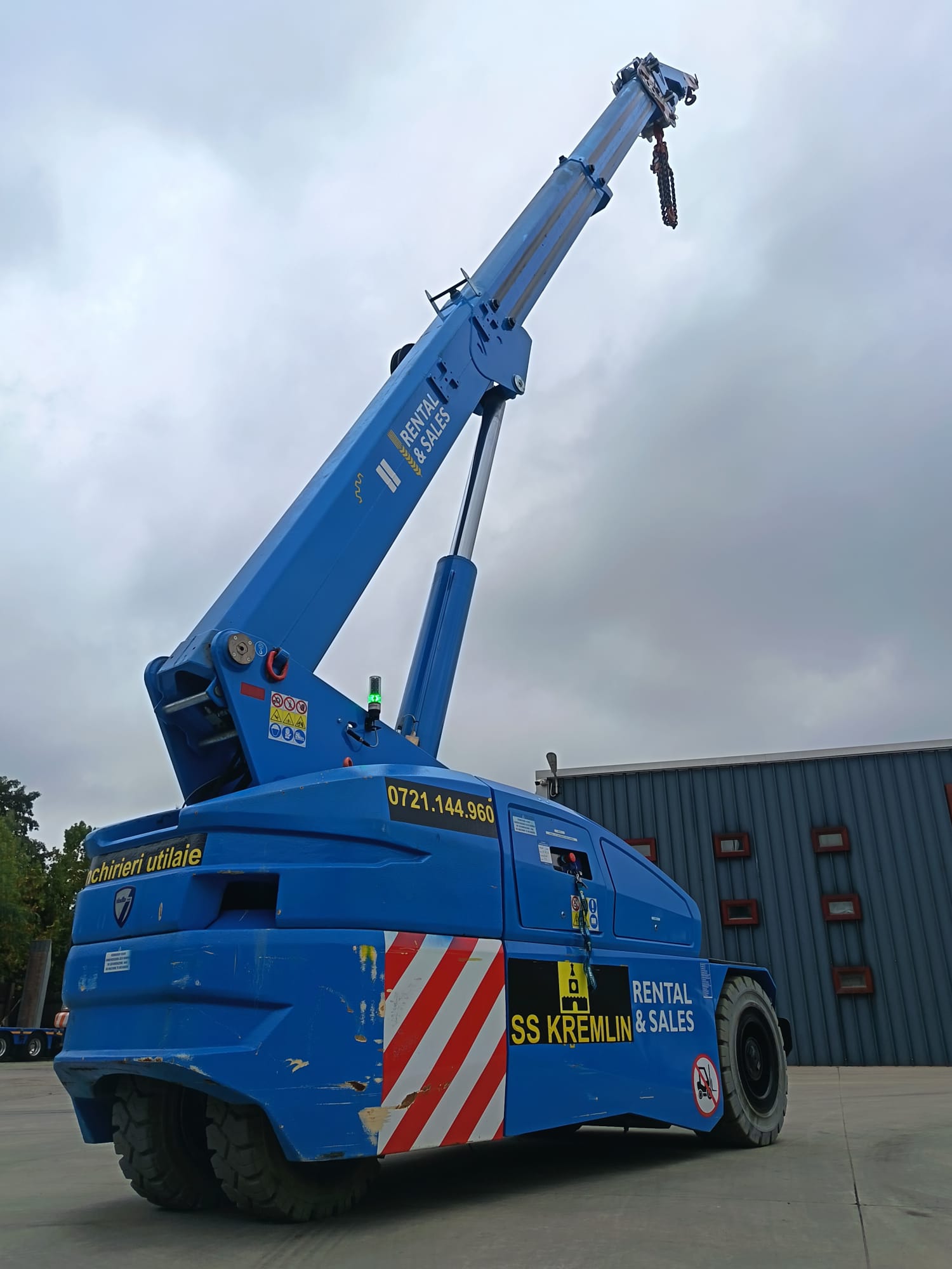 Oferim spre închiriere mini-macara Valla cu capacitate de ridicare de 8 tone, ideală pentru lucrări în spații restrânse, montaj utilaje ușoare și activități care necesită precizie și mobilitate.