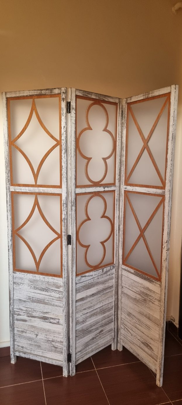 Piesă de mobilier cu design clasic, din lemn masiv, ideală pentru decor vintage, boem sau elegant. Paravanul este stabil, bine întreținut. Are un vibe boem și elegant, perfect pentru un colț cozy, dormitor sau studio