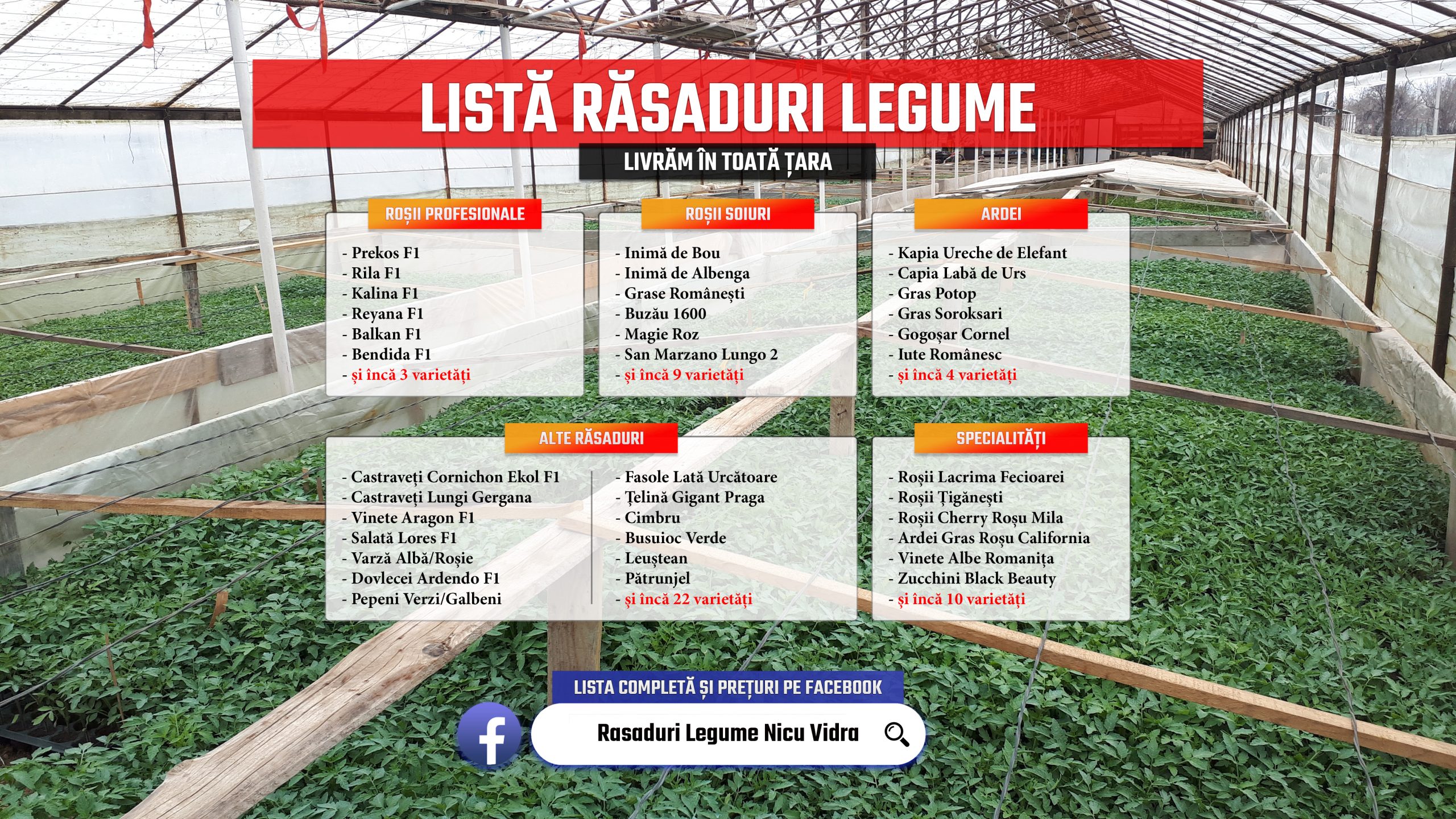 FACEBOOK, TIKTOK, INSTAGRAM, YOUTUBE, cu numele Rasaduri Legume Nicu Vidra