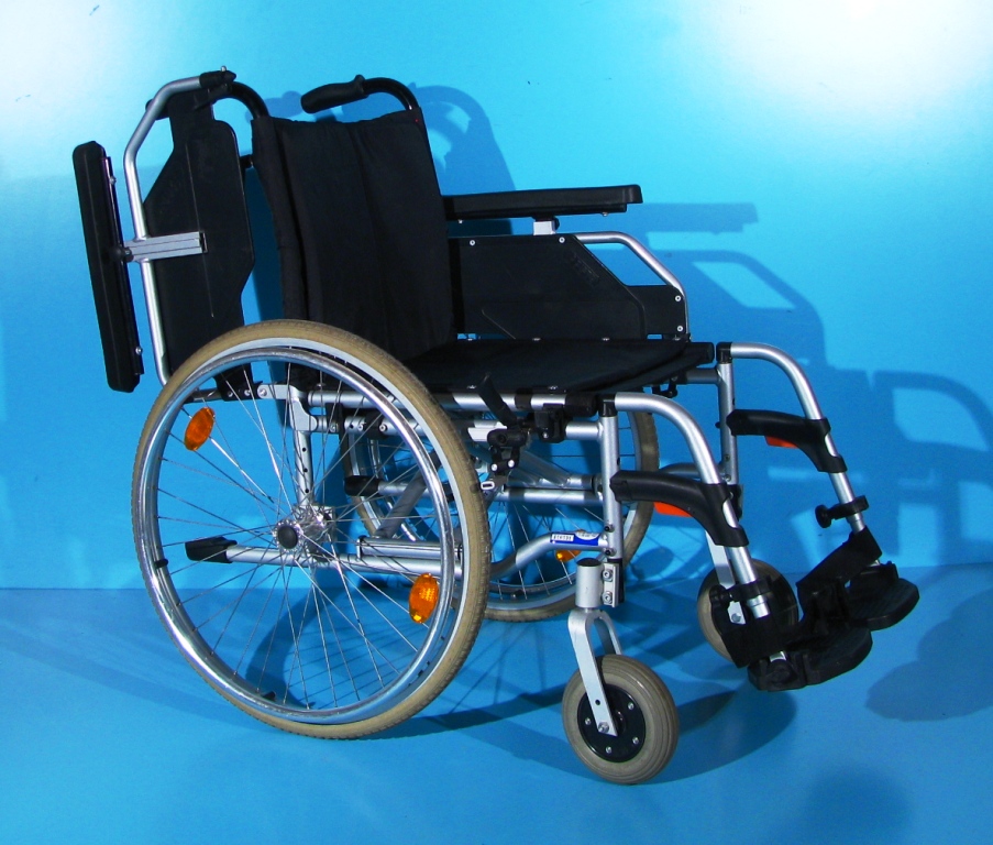 Scaunul rulant are schelet din aluminiu, vopsit epoxy.