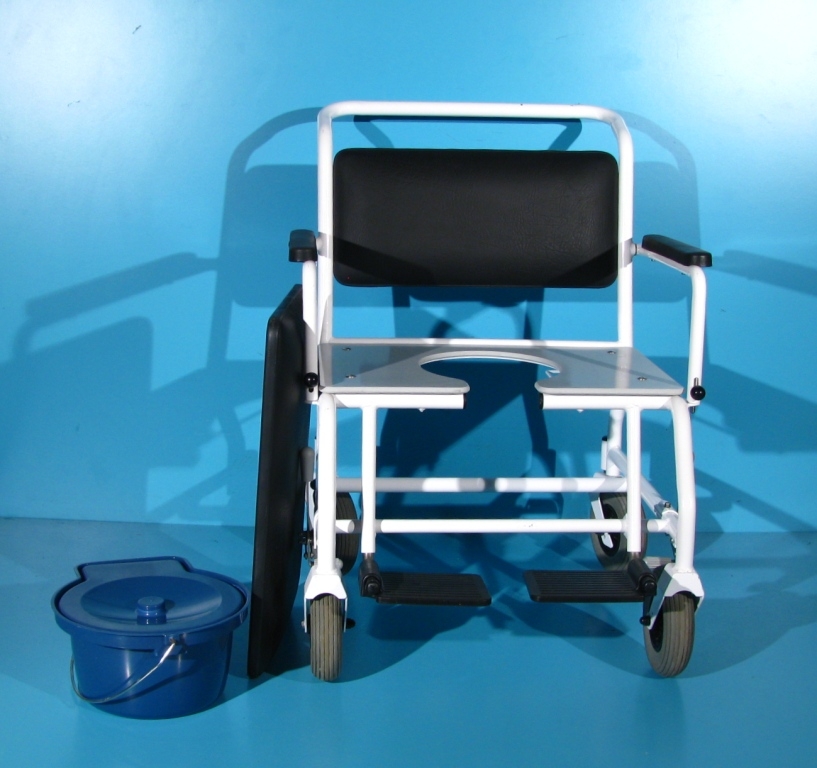 Scaun handicap cu wc (toaleta), cu rotile destinat persoanelor supraponderale cu nevoi speciale.