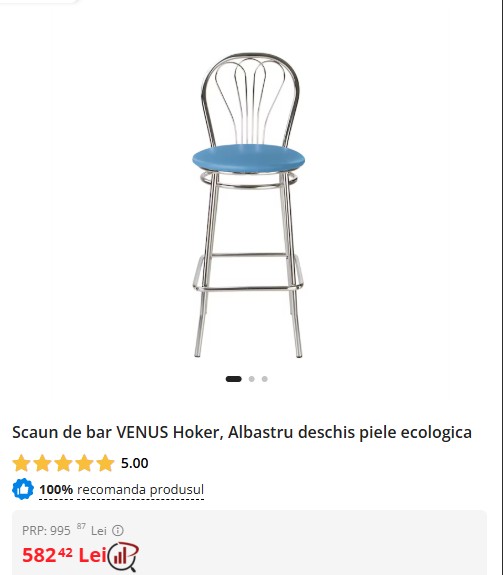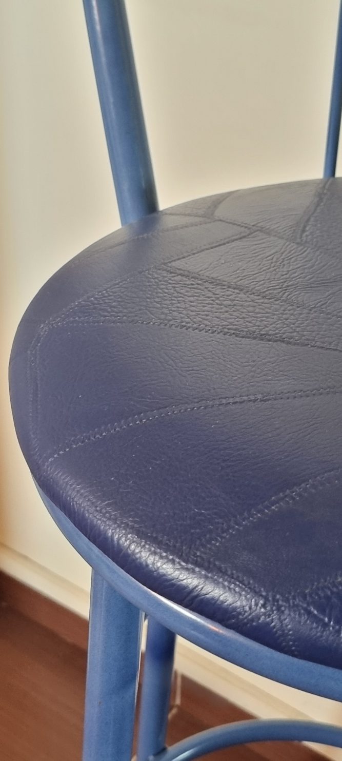 Acest scaun modern este ideal atât pentru baruri, cât și pentru zona de make-up sau coafor. Cu un design minimalist și practic, oferă confort datorită șezutului tapițat cu piele ecologică albastră, ușor de întreținut și rezistentă în timp. Structura metalică solidă asigură stabilitate, iar suportul pentru picioare adaugă un plus de comoditate.