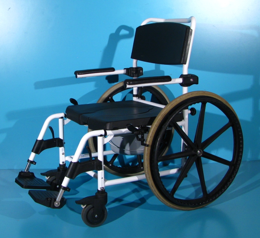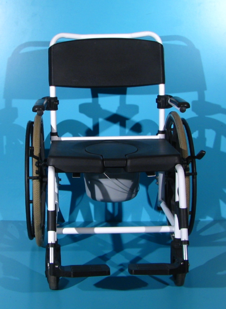 Acest carucior cu wc poate fi folosit in locuinta si ca scaun cu rotile in exterior, datorita rotilor mai mari.