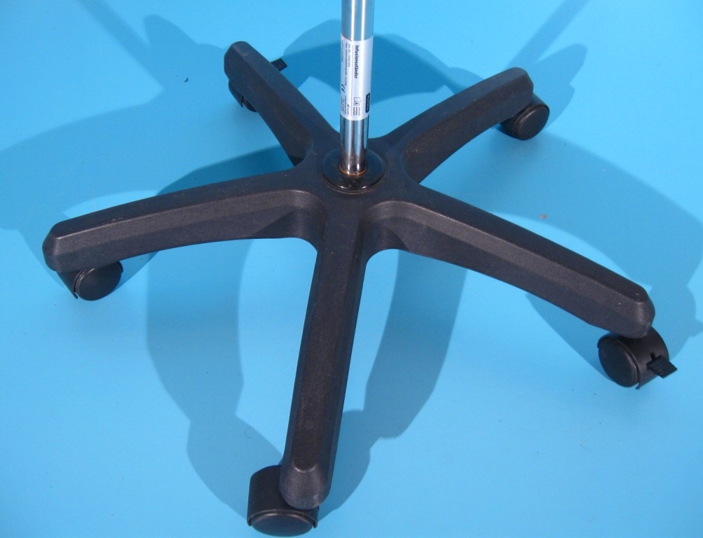 - Suport pentru perfuzie cu baza tip stea cu 5 brate si 5 role de plastic pivotante, dintre care 2 au sistem de franare.