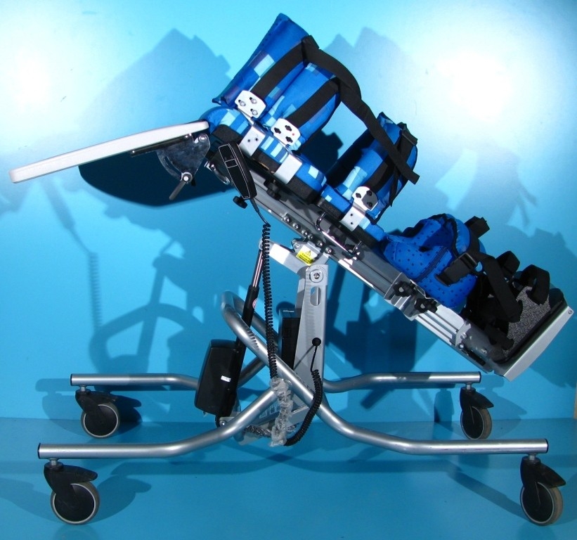 - Acest verticalizator este actionat electric permitand astfel pacientului sa execute pozitia de verticalizare dintr-o apasare de buton.